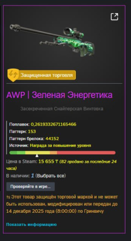 Этот товар защищен от торговли и не может быть использован, изменен или передан до 14 декабря 2025 г. (8:00:00 по Гринвичу).