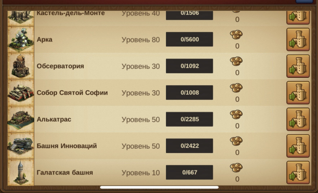 80 арка (позволяет вкладываться в здания других игроков и получать прибыль в виде стратегических очков (СО, основная валюта развития игры) в размере 90%).