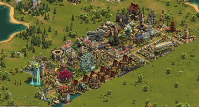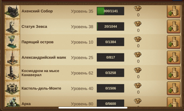 Имеются здания на атаку (зевс, Ахен, кастель) плюс два полных здания из викингов и японцев (поселения, которые дают вкусные здания).