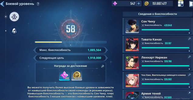 Краткое описание: Продам акк Solo Leveling 58 БУ,2кк бм, куча легендарок и пухПодробное описание: Продам личный акк Solo Leveling 58 БУ,2кк бм, куча легендарок и пух.Все топовые пачки, если что то захочется дополнительно прокачать есть карточки с выбором любого перса и оружие, а так же куча ресурсов+ донатные кристаллы.Предложения рассматриваю