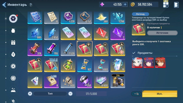 Краткое описание: ❄️🧊 40,000+ Камней + 2 SSR 🧊❄️ 650 Персональных купонов ❄️🧊 60 Купонов повышенной вероятности 🧊❄️Подробное описание: 🎁 Содержимое аккаунта: