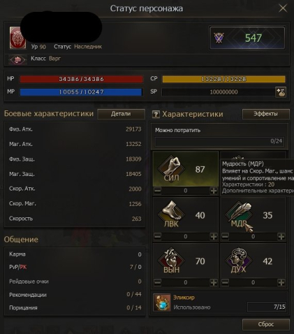 Профессия: 90 Варг, 547 ГС, Красный Кельбим, +7 кастеты, Фринта.