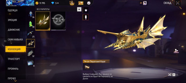 также в этом аккаунте есть редкий скайджет *Корабль* который падает только с пропуска с шансом 0,001% 🤩