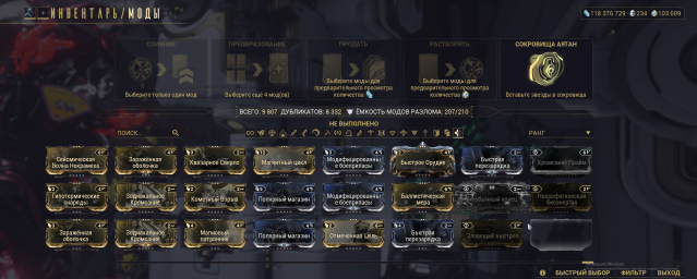 На аккаунте имеется 218 из 210 модов разлома.
