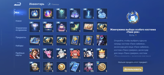 💰 Инвентарь: не тратилось вообще ничего, полученное в игре. Много сундуков, пробных героев, карт удвоения, талонов и др.
