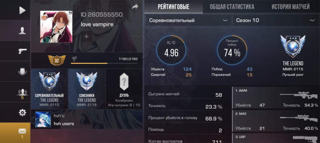 Звание: LegendКраткое описание: ☄️ТОВОВЫЙ АЙДИ 260555550☄️ ХОРОШОЕЕ КД✅ ТОПОВЫЙ ТЕГ✅ 14 РЕВЕНДЖ БОКСОВ ✅