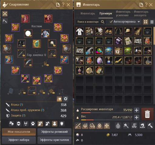 -релики кабуа 2 шт на фарм и Декии 2 шт на пвп (уклон билд собран полностью)