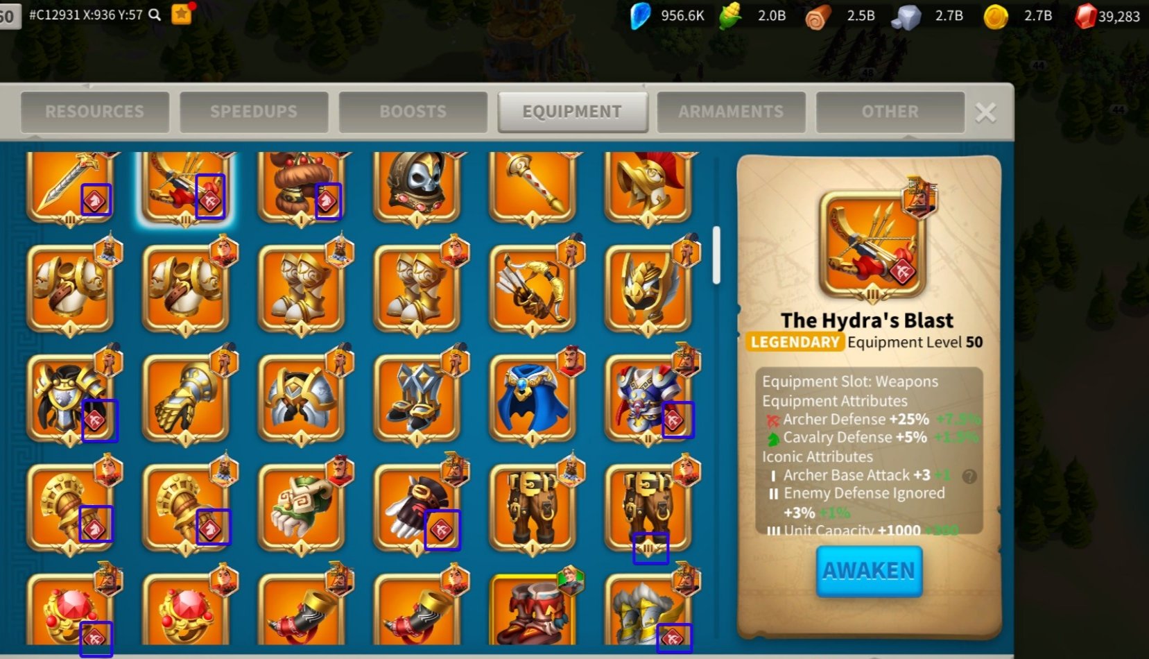 Легендарное боевое снаряжение: 33 (10 с критом (2 оружия 50 лвл с критом, шапка хана и кольцо с критом! И т.д)