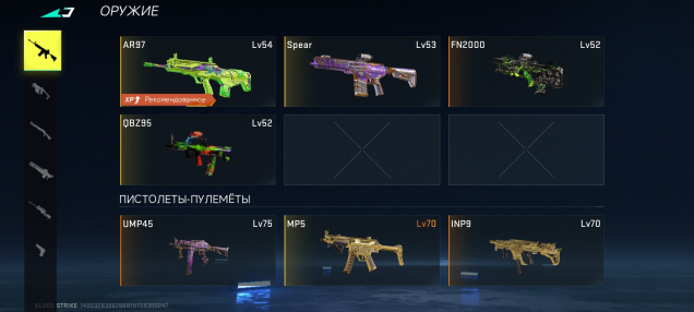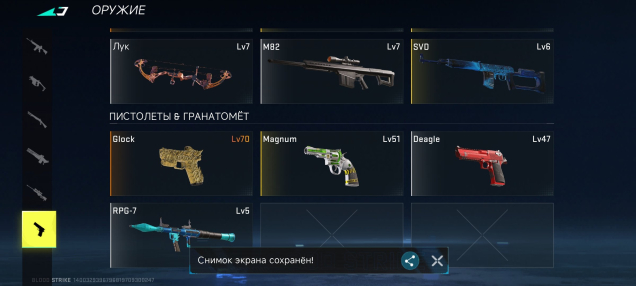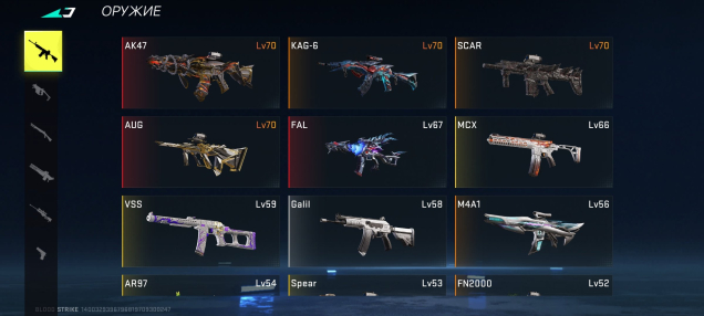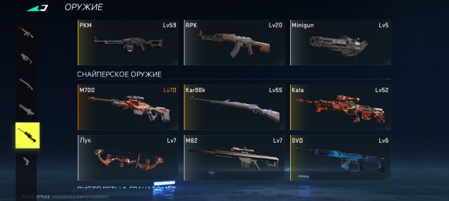 Присутствуют прокачиваемые скины улучшенные на 2 уровень практически на всех оружиях(кроме не давно добавленных)