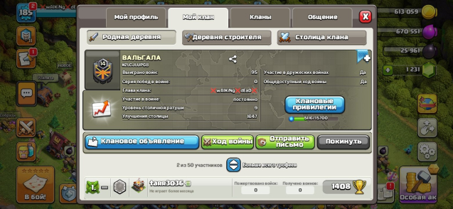 Краткое описание: Отличный клан 14 ур с 9 пик почти фулл