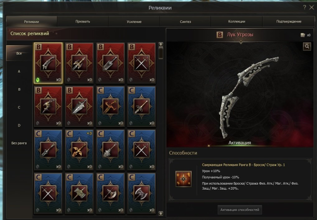 Реликвия «Лук Угрозы» и «Меч Стража» top Б