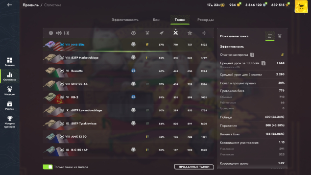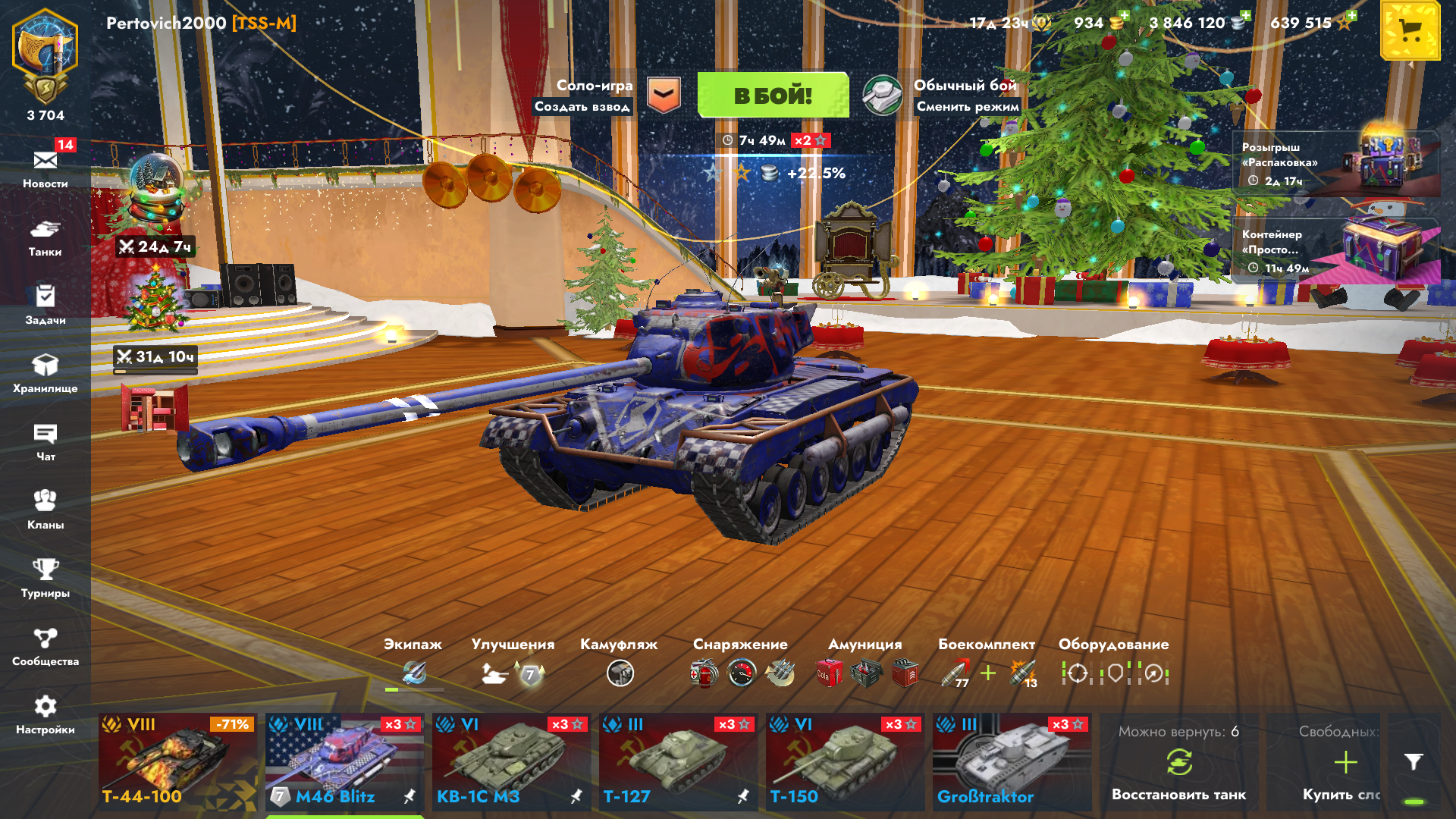3) 5 коллекционок (один из них — M 46 Blitz, один из редчайших и лучших ст на уровне, на нём у меня 700 боёв и 2 отметки)