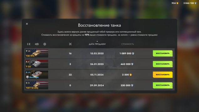 5) Несколько танков, которые можно вернуть (если продать какие-то другие)