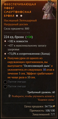 Краткое описание: ꧁ Легендарный доспех ꧂ ✭ 2 GA ✭ Ловкость, макс жизнь, сопротивление холоду
