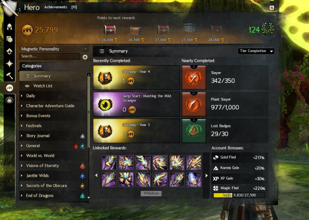 Краткое описание: ЛИЧНЫЙ АККАУНТ, GW2 EFFICIENCY 66 ТЫСЯЧ, SECRETS OF THE OBSCURE, 358 МАСТЕРИ, 25К АЧИВОК