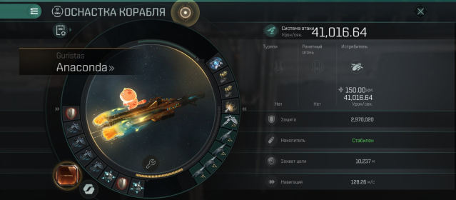 Подробное описание: Анаконда с последним золотым ядром +6+1 Астральным Котом. Расстояние атаки эсминцев 60км, стоят на месте, даже не летают никуда, убивают всë. Лучше чем Вассаго.