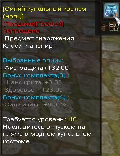 Сервер: Азмара-БлэкФорестКраткое описание: Вечный кастюм на канонира (Синий купал) Шанс крита \ Бег