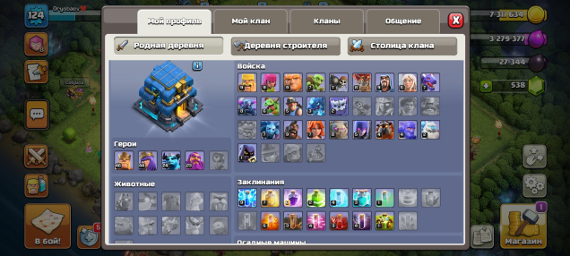 Уровень Ратуши: 12Краткое описание: ⚡ Быстрая ВЫДАЧА 🔵 С ПОЧТОЙ 🔵 90% ФУЛЛ 12 ТХ 🔵 ГЕРОИ 47/45/25/24 🔵 500 ГЕМОВ 🔵 24 ЗЕЛЬЯ 🔵