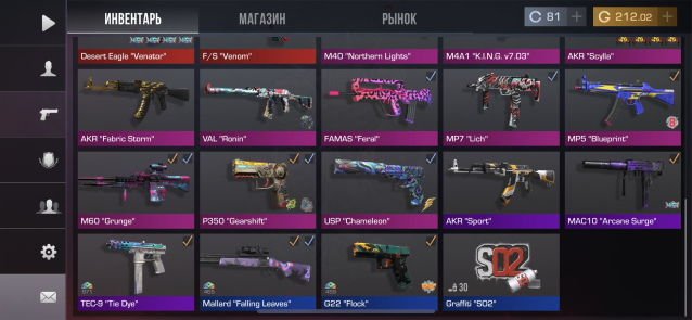 Есть 4 ножа, 2 пары перчаток, Арк т Кинг статрек, и много легендарок — дорогие! пару епиков и рарок, а так же 200 баланс!