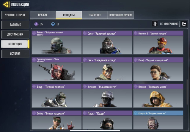🎯 СОЛДАТЫ: 35 ЭПИК🟪, 11 РЕДКИЕ🟦