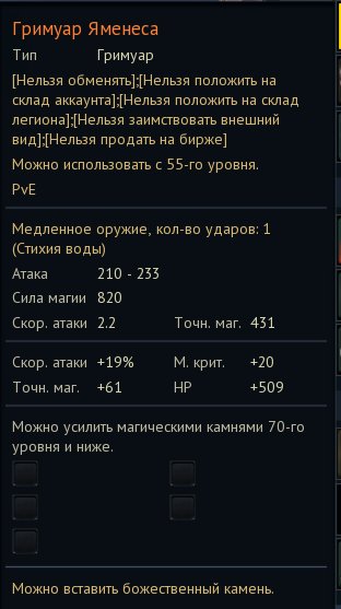 🔹Гримуар Яменеса. (55 пве рыж подпай со скоростью атаки 19%)