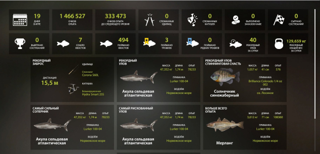 Все ключевые характеристики аккаунта, включая инвентарь, снасти и статистику, вы можете детально рассмотреть на скриншотах.