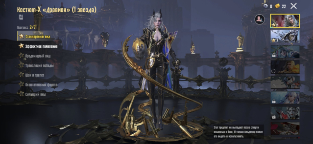 Подробное описание: На аккаунт находится 2x костюма, каждый на 2 уровне, 6 киллчатов, 2 оружия до фулла, много мифик вещей, большинство с рп, а некоторые выбивались с кейсов или рулеток