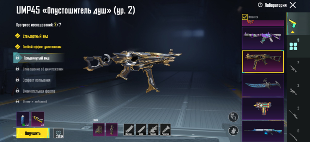 Прокачиваемые оружия: 1-9