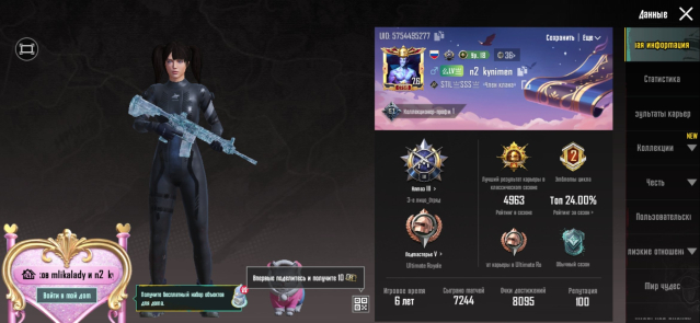 Куплены внешка, зализ, косы, на аккаунте 2 питомца, 101 мифик, 31 прокач. оружий, аккаунту 6 лет, 61 уровень коллекции, 76 уровень аккаунта, есть 2 завика.