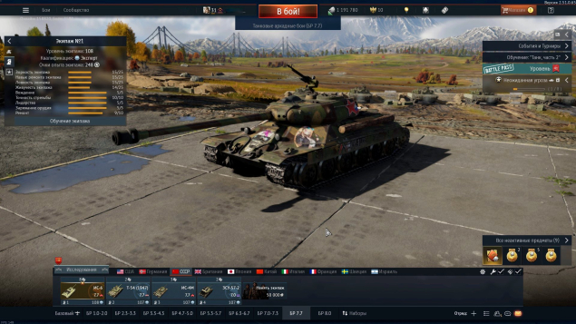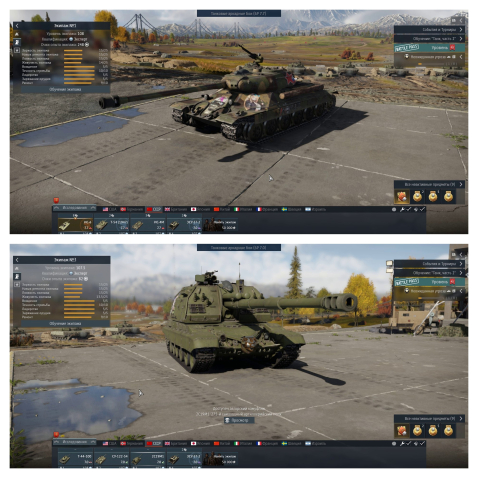 Премиум техника – мощнейший ИС-6 (БР 7.7) цена 2900 р. и убойный Т34-57 1943 г (БР 4.7) 1750 золота. Общий донат около 5500 рублей. Аккаунт подготовлен максимально для комфортных боев.