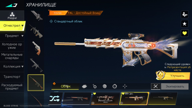 Краткое описание: Продам аккаунт в Blood Strike, отличный для своих денег!!Подробное описание: В аккаунте есть ещё многие скины так и на оружие, так и на бойцов!