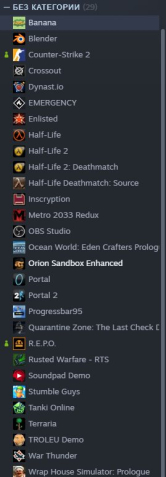 Подробное описание: игры:half-life,half-life 2,half-life deathmatch,inscription,metro 2033 redux,,orion sendbox,portal ,portal2, progressbar 95,r.e.p.o,rusted warfare,terraria,war thunder(pro akk)