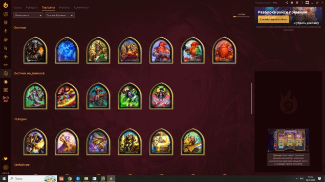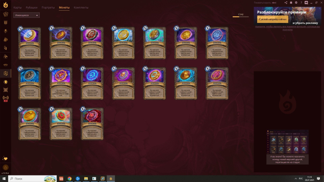 Подробное описание: Личный аккаунт с многолетней историей. 35000+ очков достижений. Почти на каждом классе сделано 1000+ побед. 70000+ пыли, 3000+ тысяч золота. Уникальные рубашки. Количество легендарок огромное, в том числе и прошлых дополнений, коллекция не пылилась, поэтому если пылить старые дополнения, то можно еще неограниченное количество пыли извлечь. Огромное количество портретов на каждый класс. Куплены минисеты в игре. С аккаунта не донатил, поэтому перепривязка проста. Возможен небольшой торг. Аккаунт развивается по сей день.