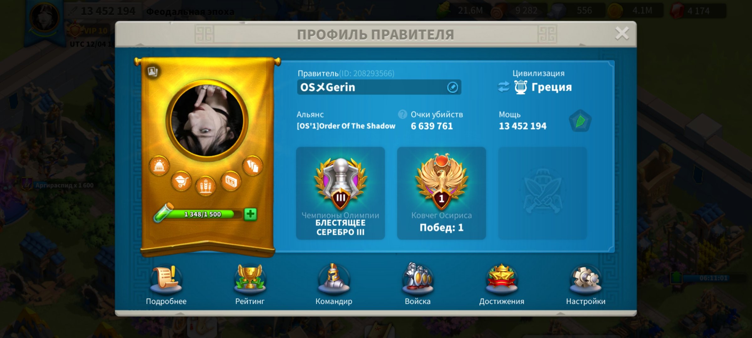 Продаю свой аккаунт ROK. Аккаунт молодой, всего 111 дней, при этом очень хорошо развитый, донатный, с грамотной прокачкой командиров и снаряжения.
