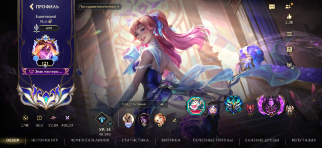 Очень много хрустальных роз, почти фул линейка небесного одеяния(нету только престижки на шаю и рекана)Космические, кда, духи погоды(все кроме престижки эзреаля), боевая академия и ФУЛ линейка морских глубин