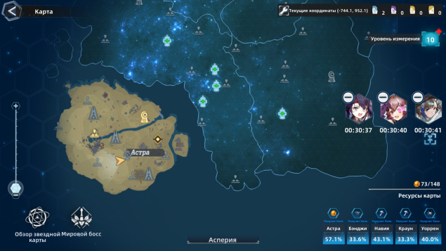 Сюжетная линия не пройдена, карты не открыты кроме Астры