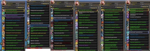 ✅Пепел Ал`Ара(Кельтас) ✅Астральный императорский змей (Remix Pandaria) ✅Поводья сланцевого доисторического дикорога ✅ Клыки Маннорота✅Инфернал адского пламени(ГулДан)