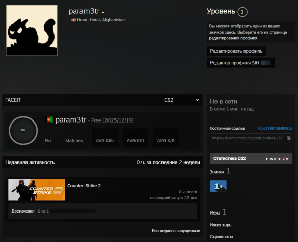 ⚡ FACEIT зарегистрирован, 4 lvl (1000 elo), premier в игре не открыт (нужно отыграть игры)