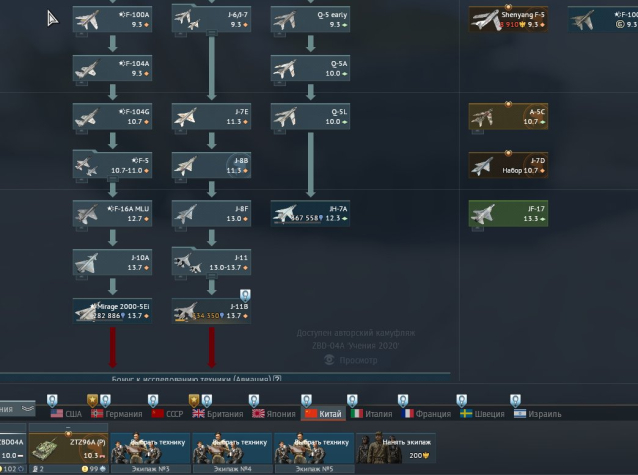 China: Вся нация, новая техника не исследована, топы танки вкачаны, вертолёты кроме Z-10, Авиация фулл кроме Миража и прем топ танк и авиация
