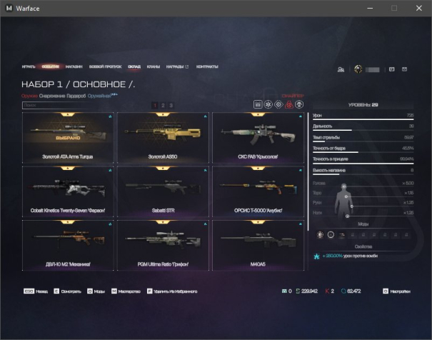 ✔️ Снайпер: CDX-MC Kraken, Benelli MR1, Sabatti STR, СКС FAB 'Крысолов', Золотой ATA Arms Turqua, Золотой AS50, ДВЛ-10 М2 «Механика», ОРСИС Т-5000 «Анубис», PGM Ultima Ratio 'Грифон', M40A5, Cobalt Kinetics Twenty-Seven «Фараон»