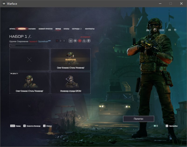 ✔️ Внешности: Отряд GROM — Все классы, Олег Климов — Инженер, Агент «Корсар» — Штурмовик, Отряд Горгона — Снайпер