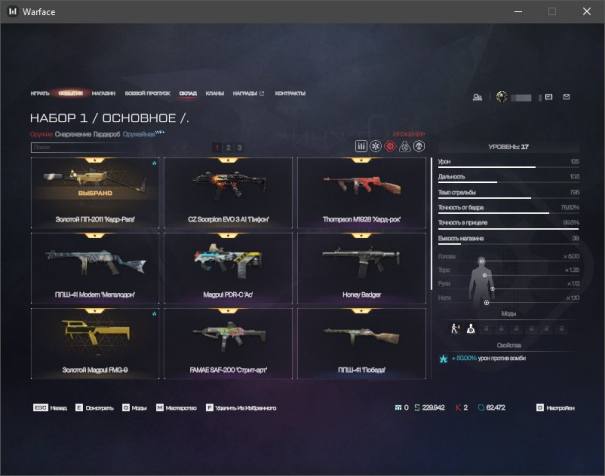 ✔️ Инженер: Taurus CT9 G2, Kriss Super V Custom, FAMAE SAF-200 «Стрит-арт», Thompson M1928 «Хард-рок», Honey Badger, CZ Scorpion EVO 3 A1 «Пифон», ПП-2000, ППШ-41 «Победа», M4 SMG Custom «Фараон», Золотой Magpul FMG-9, Magpul PDR-C «Ас», ППШ-41 Modern «Мегалодон», Золотой ПП-2011 «Кедр-Para»