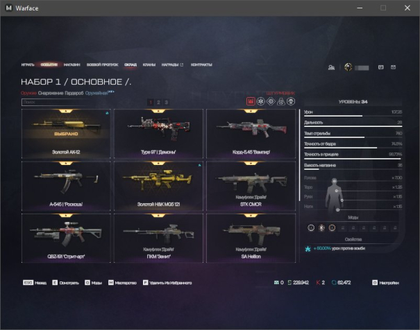 ✔️ Штурмовик: АК «Альфа», ПКМ «Зенит», SA Hellion, IWI Carmel «Неустрашимые», QBZ-191 «Стрит-арт», STK CMCR, IMBEL IA2, Золотой H&K MG5 121, Золотой АК-12, А-545 «Роскошь», АК-103 «Анубис», Type 97 «Демоны», Корд-5.45 «Вампир»