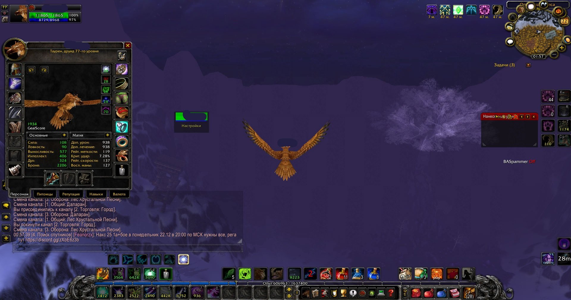 🔥✅Сова 80 уровень Польоти по Нордсколу (Трава 450 / Снятие шкур 450)✅🔥, 80 уровень, Таурены, Друид