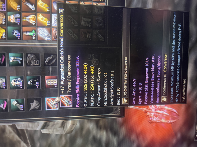Сервер: KetraWars.net x1200 OLDТип предмета: Оружие