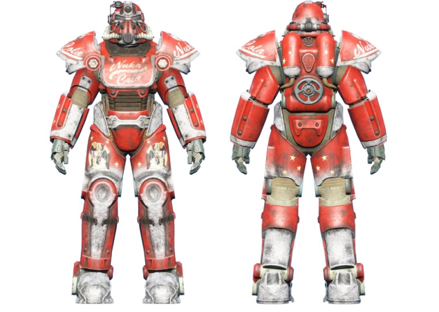 Подробное описание: Силовая броня T-51 В окраске Nuka-Cola (без шлема) со свойствами: