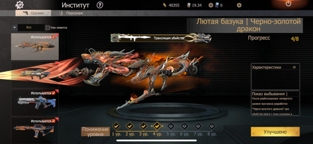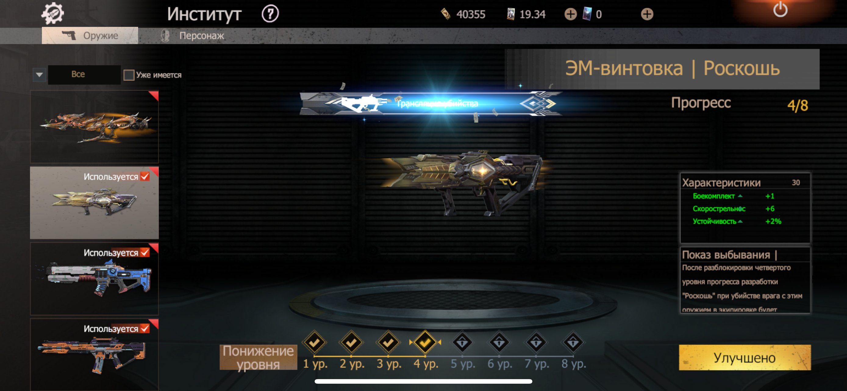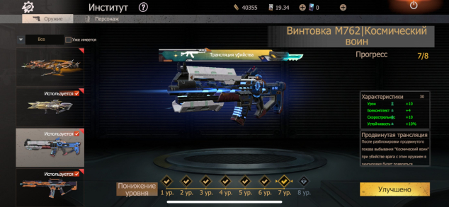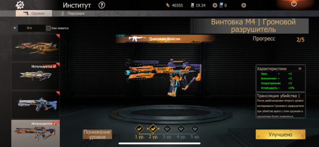Доп инфо: на аккаунте имеются 4 пушки с института: рпг(4 ур), эм Ган(4 ур), Берил (7 ур), м4(2 ур).