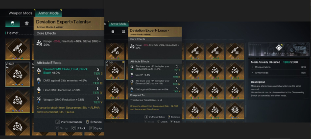 ➖ Все моды в оружие и броне заточены на 5 с подбором легендарного атрибута на стихийный урон -💥(см.скрин)