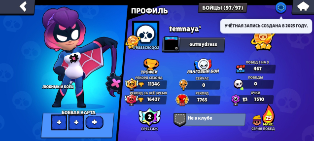 Краткое описание: 11К НА АМБЕР🌸🌸3 ЛЕГЕНДА РАНГ🌸🌸2 ПРЕСТИЖА🌸🌸ТОЛЬКО ТРИО ПОБЕДЫПодробное описание: Отличный аккаунт для тех кто хочет красивый профиль, на аккаунте 3 легенда, а так же 2 престижа, на аккаунте кубки только на амбер 11к, остальные персы пустые. Аккаунт могу отдать с почтой, а так же просто перепривязать ее на вашу.