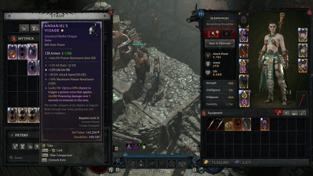Andariel's Visage, Tyrael's Might, Shroud of False Death, Ring of Starless Skies